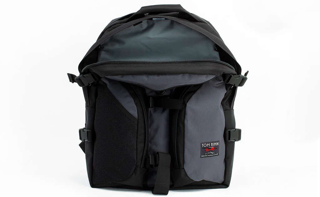 Side compression straps compress the Brain Bag when it is not full and stabilize the load; you can also tuck a raincoat, hoodie, or yoga mat under these straps. The Brain Bag has a top handle made of 1/2" PORON® foam wrapped in 1050 denier ballistic nylon fabric. And what about the shoulder straps? Conformity is overrated — except, perhaps, when it comes to shoulder straps. The edgelessness of the Brain Bag shoulder straps allows them to more softly conform to your shoulder — we find that this increases comfort. Yet the straps aren’t too soft: the 1/2” thick EVAZOTE® OEKO-TEX® certified foam means the strap is robust enough to carry a heavy load. Removable 3/4" sternum strap and 1-1/2" waist straps are there if you need them but are easy to remove if you don't. The back is made of Spacer mesh and is padded with 3/8", high quality, closed-cell foam.